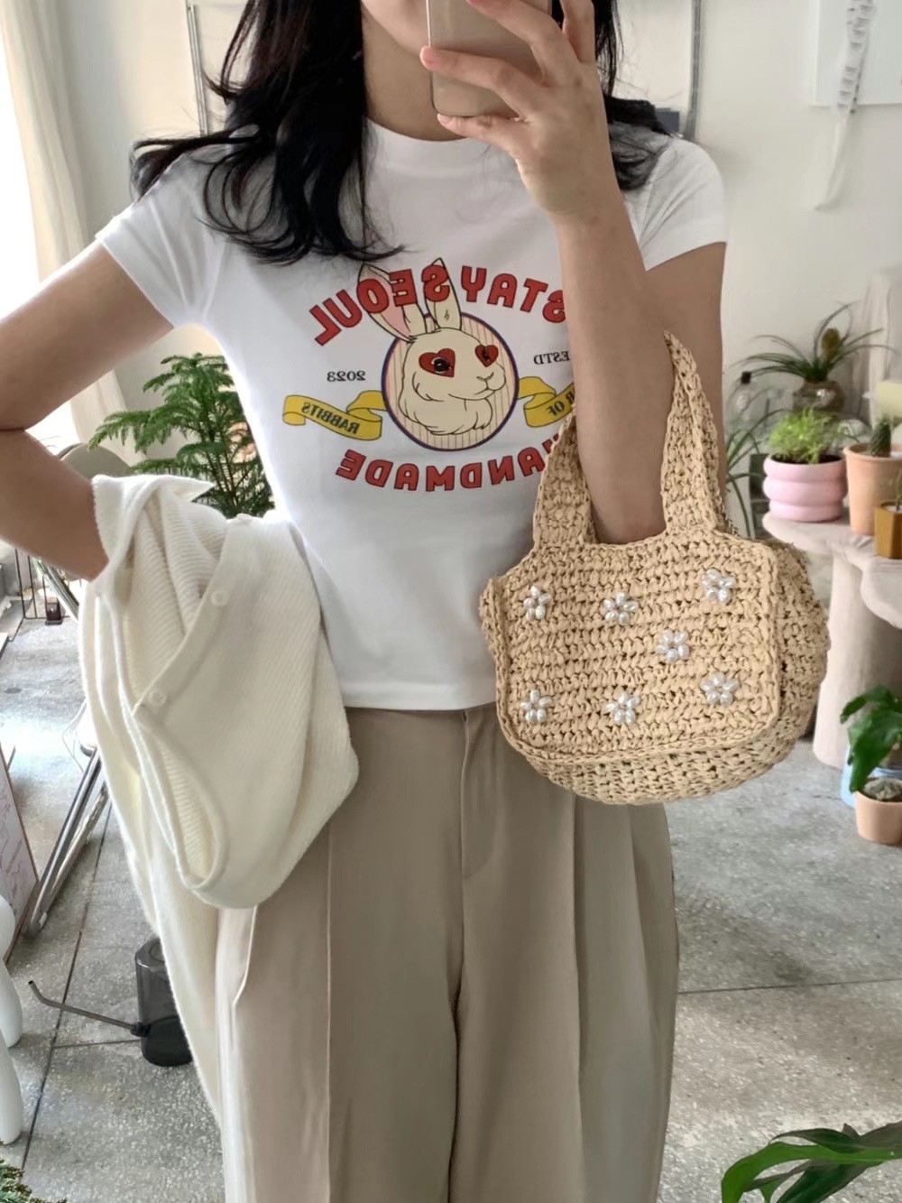 春裝新款 短版Rabbit Seoul T恤
