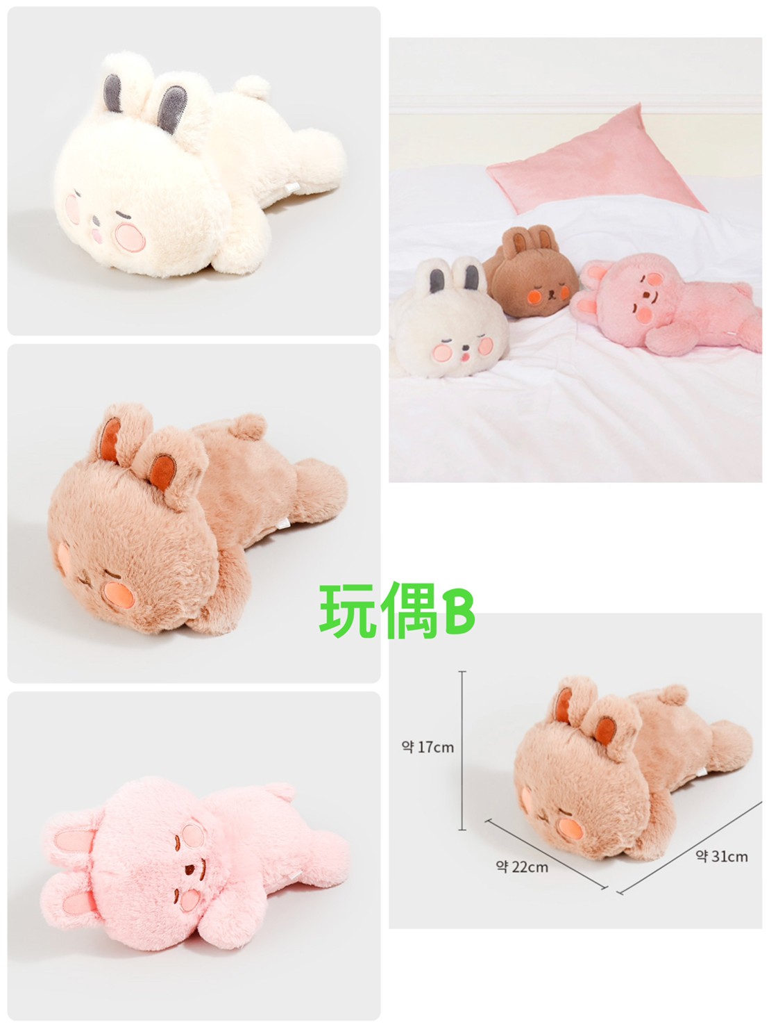 玩偶靠墊A:約28X48CM