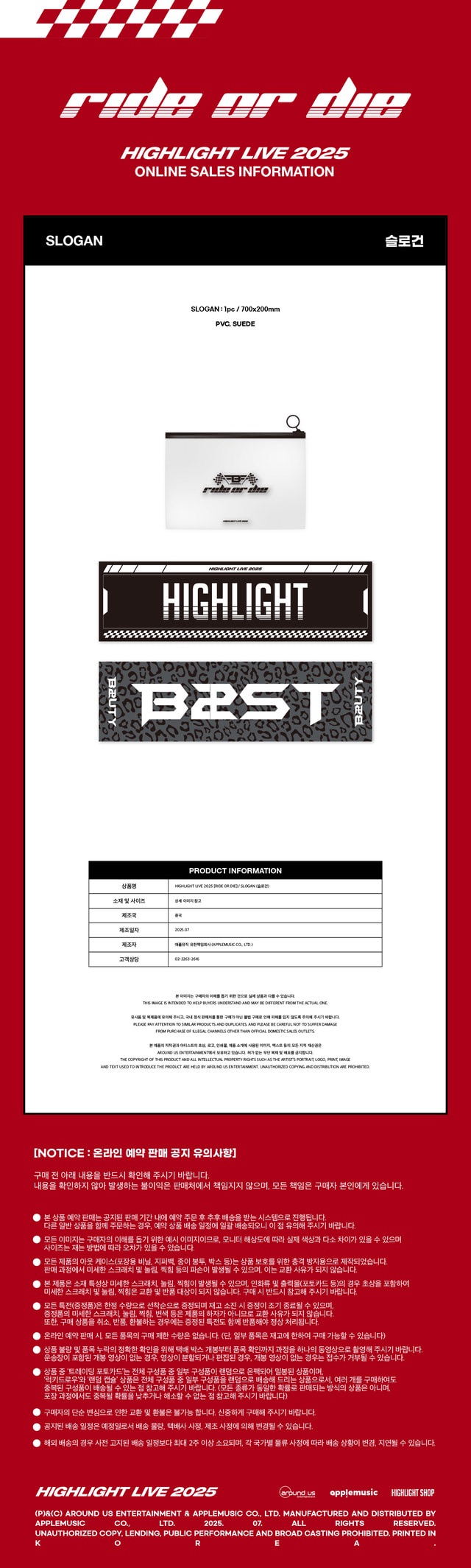 HIGHLIGHT LIVE 2025 "RIDE OR DIE" 官方周邊 手幅