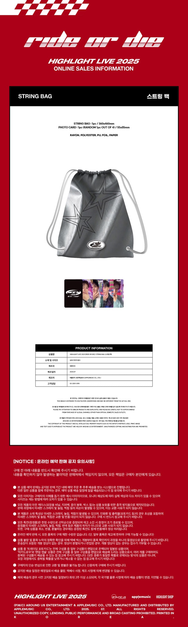 HIGHLIGHT LIVE 2025 "RIDE OR DIE" 官方周邊 束口後背包套組