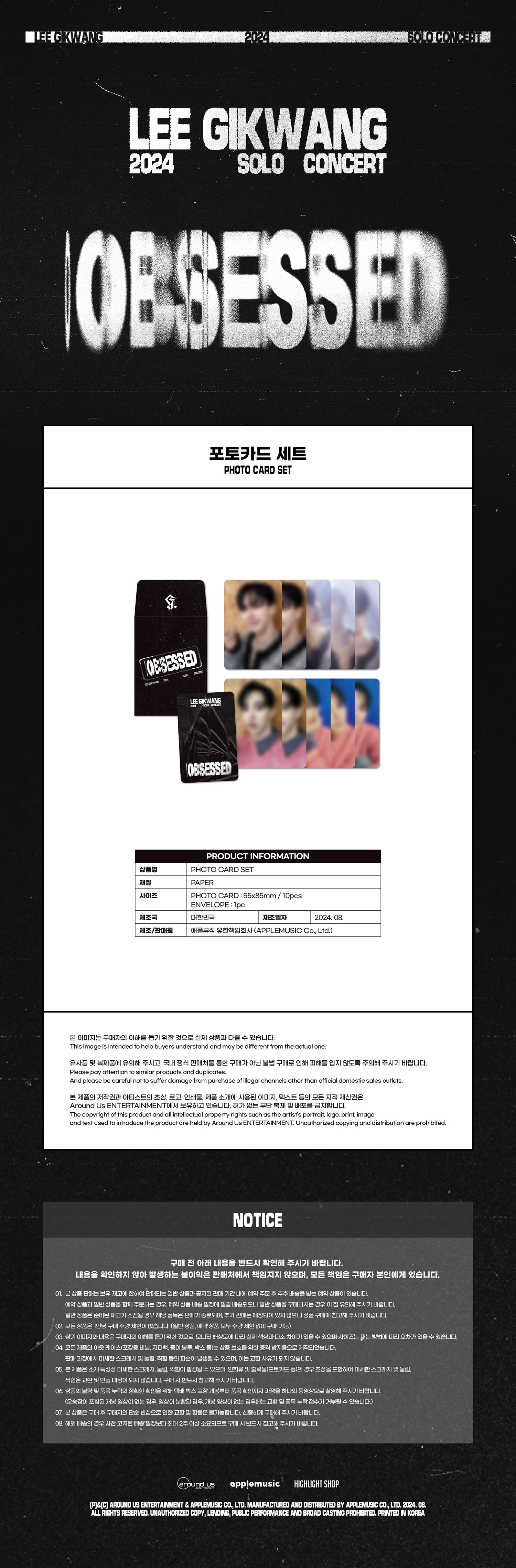 Highlight GiKwang 2024個人演唱會 "OBSESSED" 官方周邊 寫真小卡套組