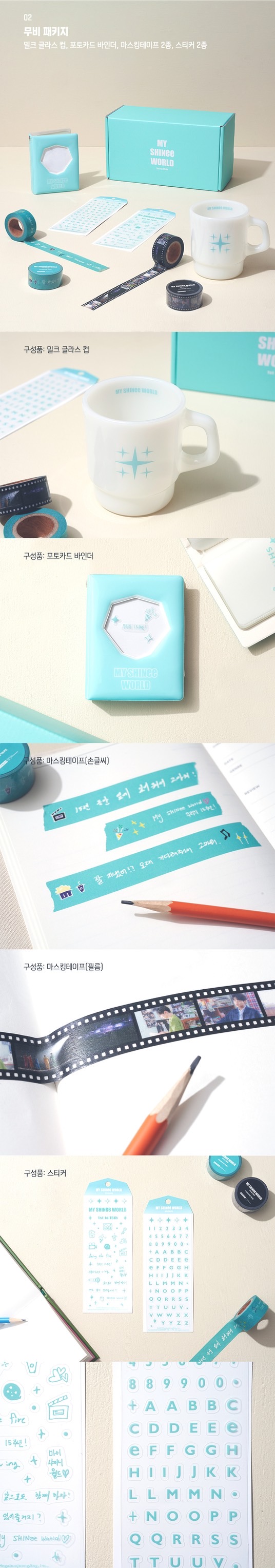 牛奶玻璃杯 1pc、紙膠帶 2pcs、寫真膠帶 1pc、裝飾貼紙 2pcs、寫真小卡 1pc