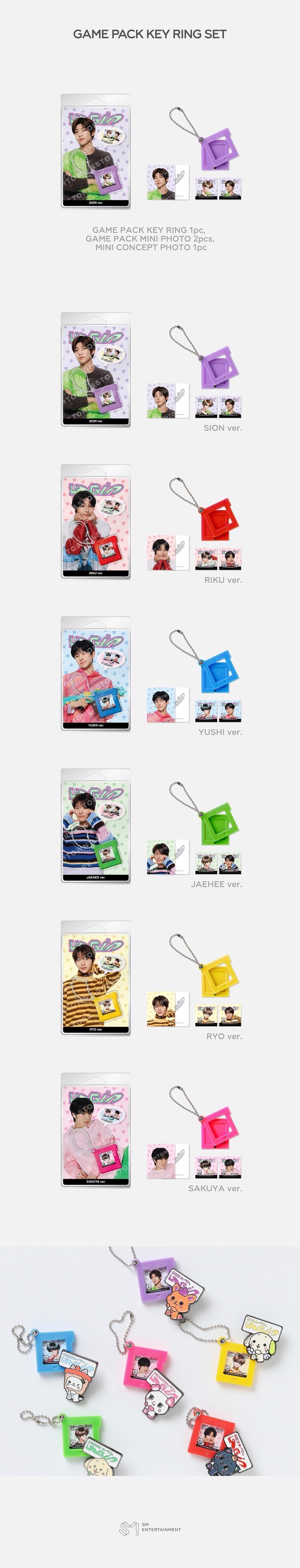 遊戲包鑰匙鏈 1pc、遊戲包迷你小卡 2pcs、迷你概念小卡 1pc