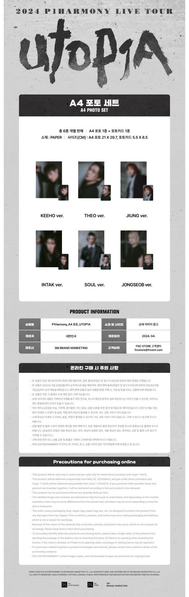 P1Harmony 2024 LIVE TOUR "P1ustage H : UTOP1A" 官方周邊 A4寫真照套組
